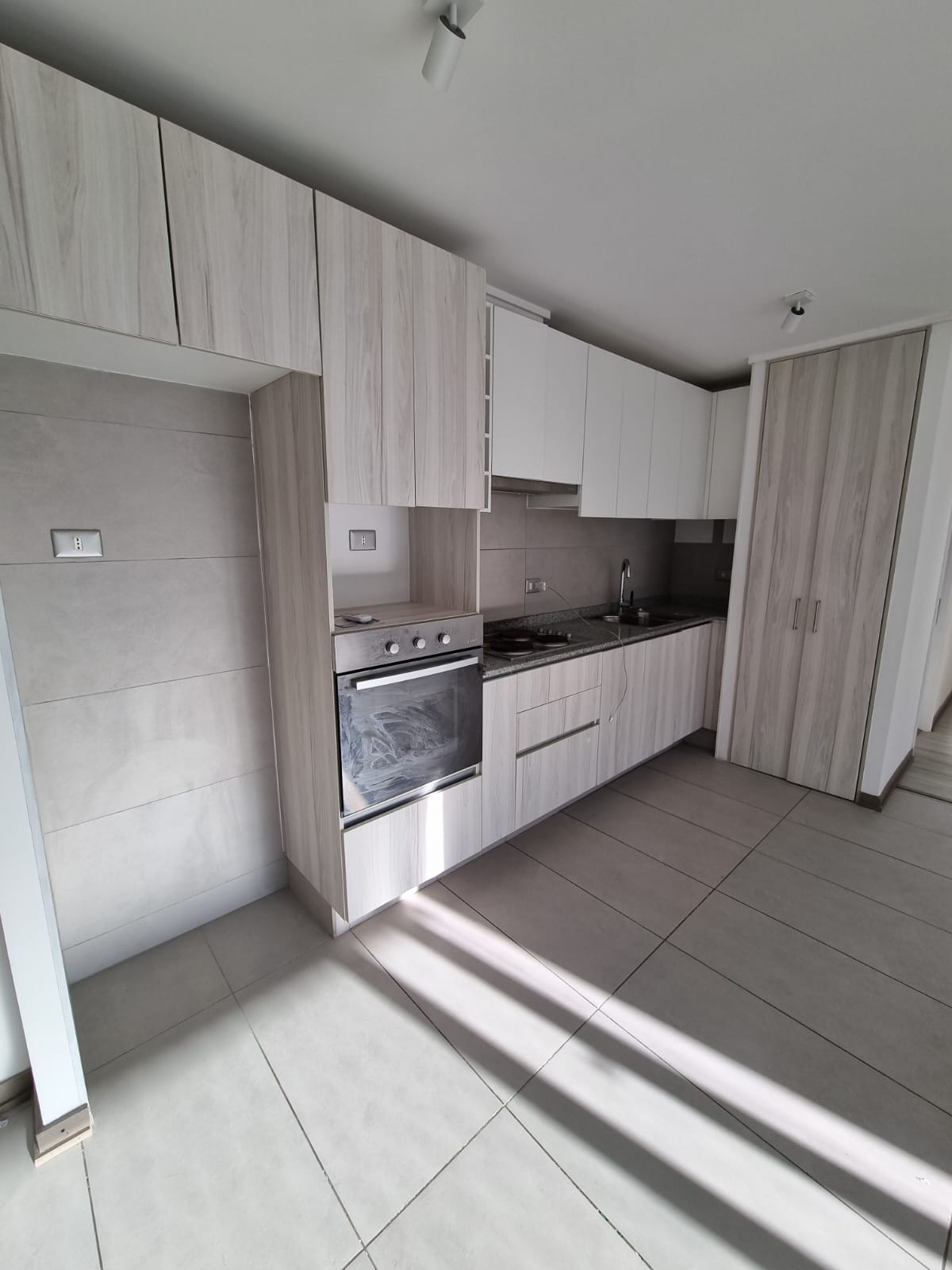 🔹 Cocina americana amoblada y equipada (encimera eléctrica, horno y campana)